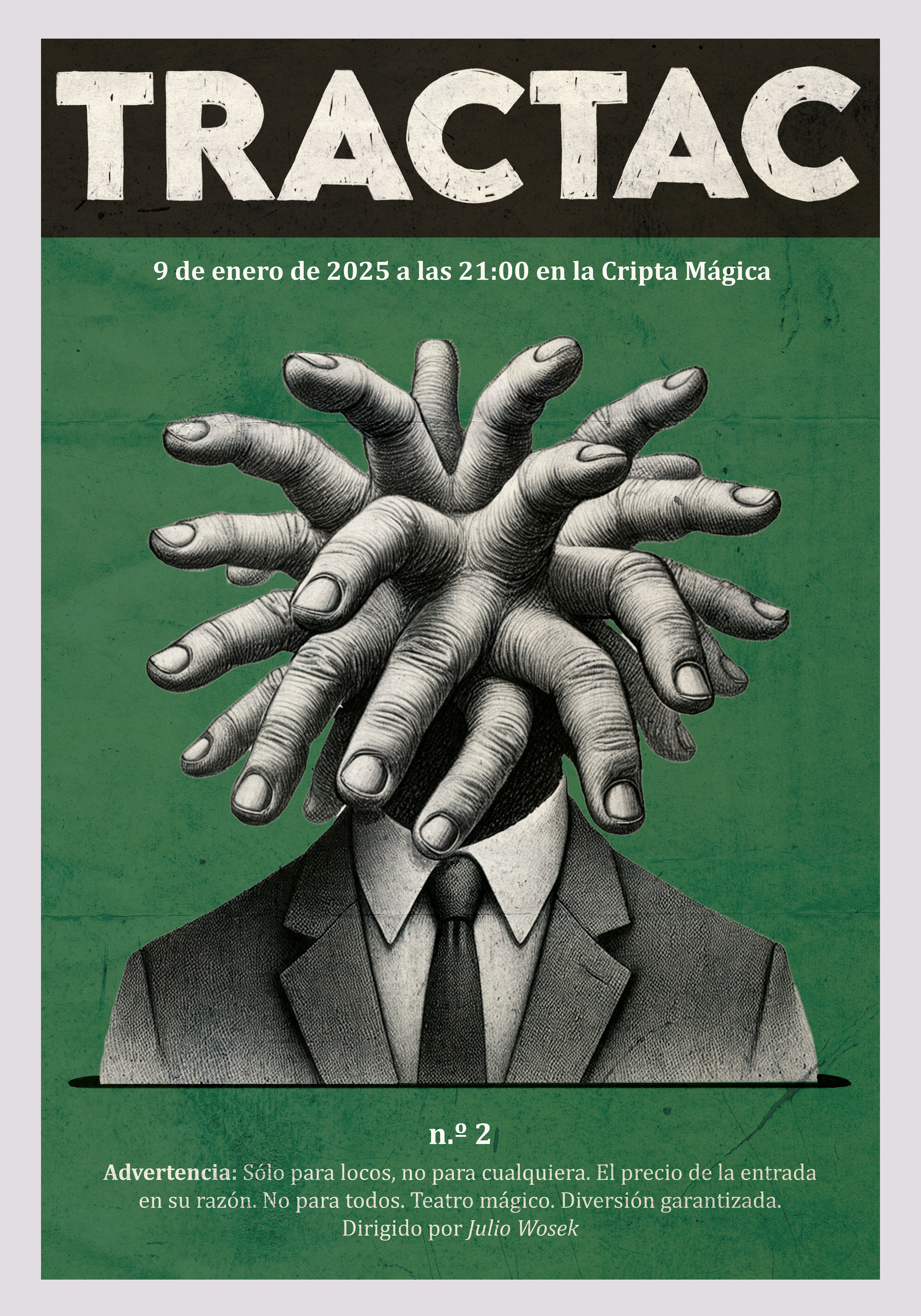 Tractac is an ongoing live project, presented monthly in Madrid with regular sold-out editions, and available for theatres, festivals and private events. Each edition is curated and directed by Julio Wosek, bringing together artists from different disciplines to create a cohesive and immersive live experience.